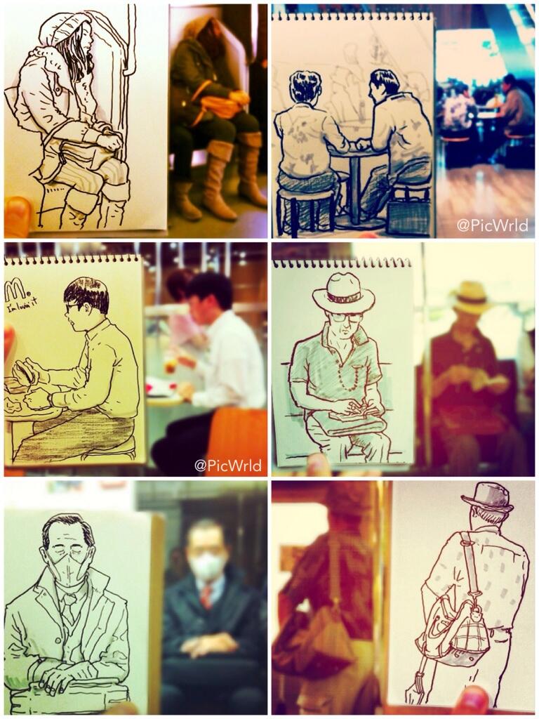 فنان ياباني يقوم برسم بعض الأحداث اليومية التي تصادفه